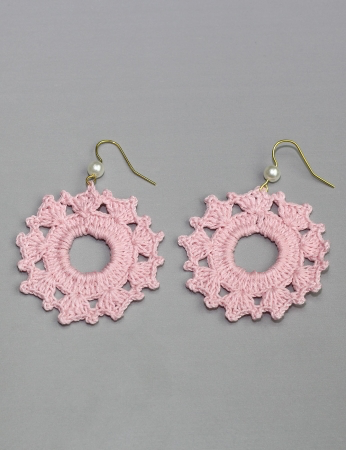 Estos pendientes presentan un diseño moderno y minimalista en forma de círculo, con un toque contemporáneo y hecho a mano proporcionado por el crochet. El suave y romántico color rosa bebé le da a la pieza un toque de dulzura y ligereza, haciéndola perfecta para añadir un toque de encanto a cualquier look, desde casual hasta formal. El detalle de perla central, dentro del círculo, añade un punto de brillo y sofisticación, complementando el diseño con un toque clásico y elegante.