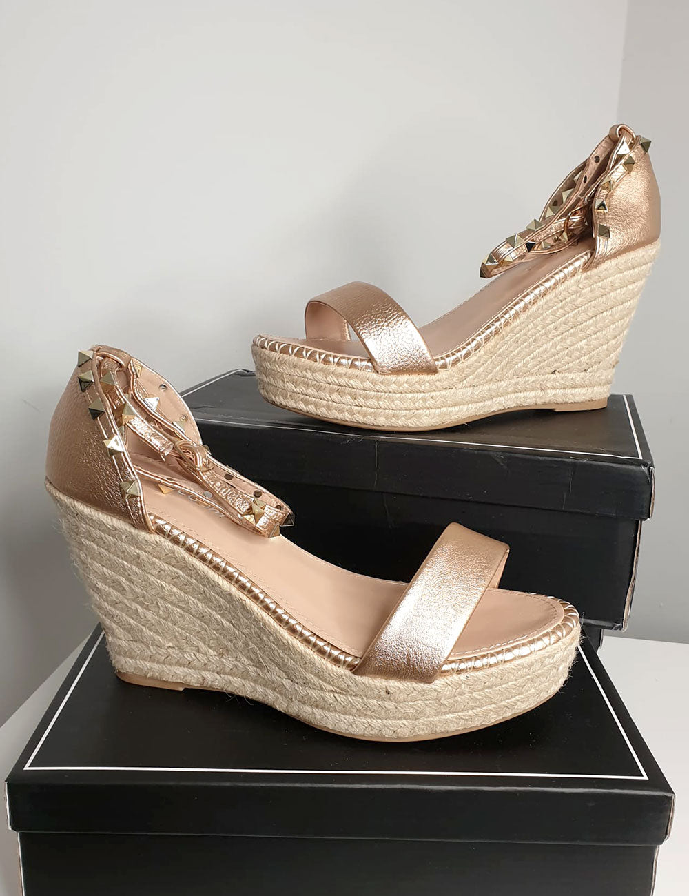 ✅ Estilo: Sandália Espadrille / Anabela com Tachas.